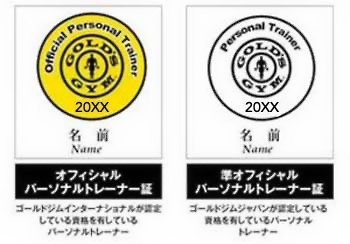 ゴールドジムのオフィシャルパーソナルトレーナーはこのバッジを着けています。