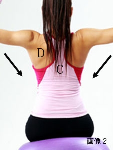 僧帽筋下部は画像2のCとDのところにくっついていますので、これを収縮させる運動を行います。